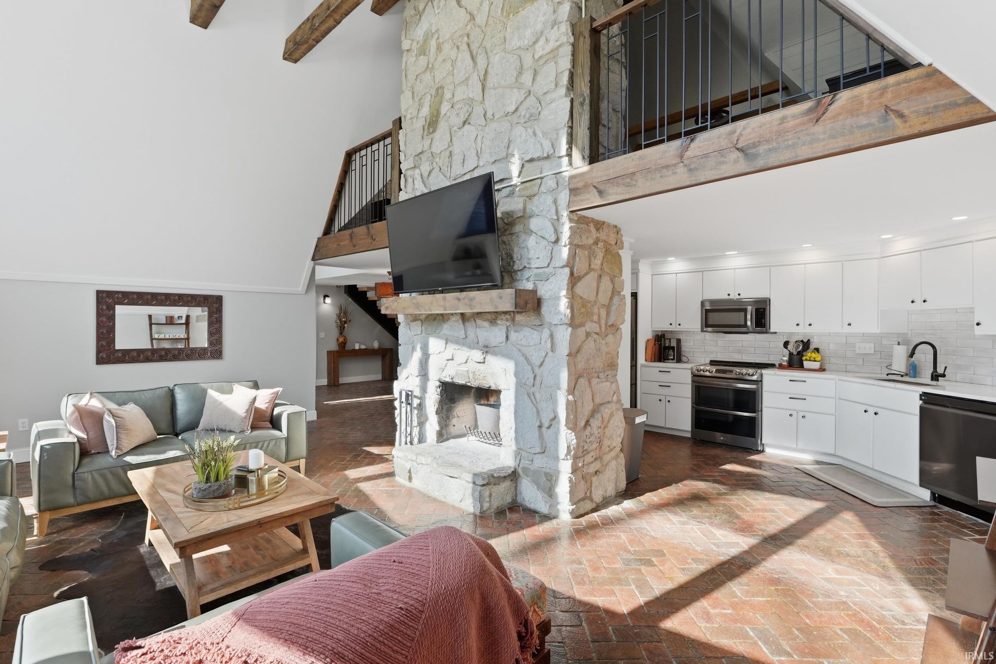 Tucked away on just over 18 acres, this beautifully updated estate offers over 4,200 square feet of refined living in a private serene setting. Featuring 5 bedrooms and 3.5 baths, the home blends modern updates with timeless design, including a striking floating staircase that makes an unforgettable first impression. Inside you'll find soaring vaulted ceilings, rich stone accents and a dramatic floor to ceiling stone fireplace. This creates a warm yet elevated living space filled with natural light. The stunning updated kitchen anchors the home, ideal for both everyday living and entertaining while the spacious primary suite offers a relaxing retreat. Step outside to your own private escape with an inground pool, peaceful surroundings and a picturesque stream along the front of the property. The acreage offers endless room to roam, unwind or create your vision. Complete with 3 car attached garage and detached outbuilding, this property delivers space, style and privacy in one exceptional setting.