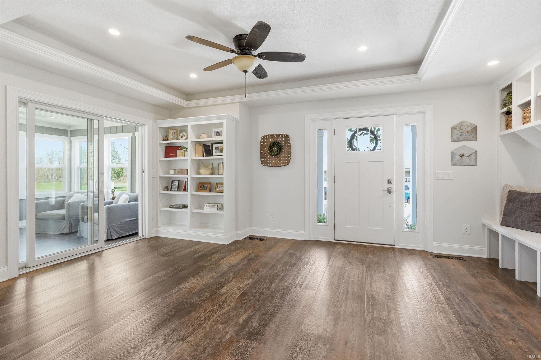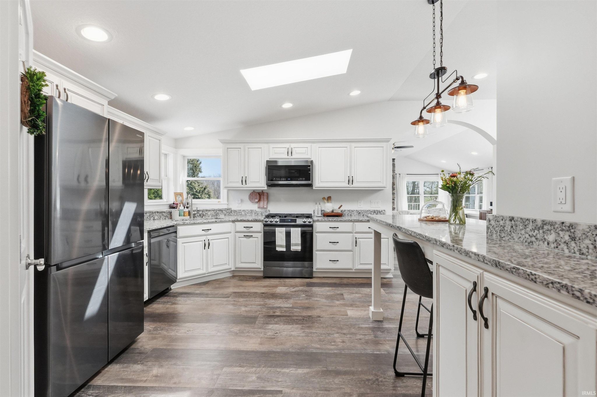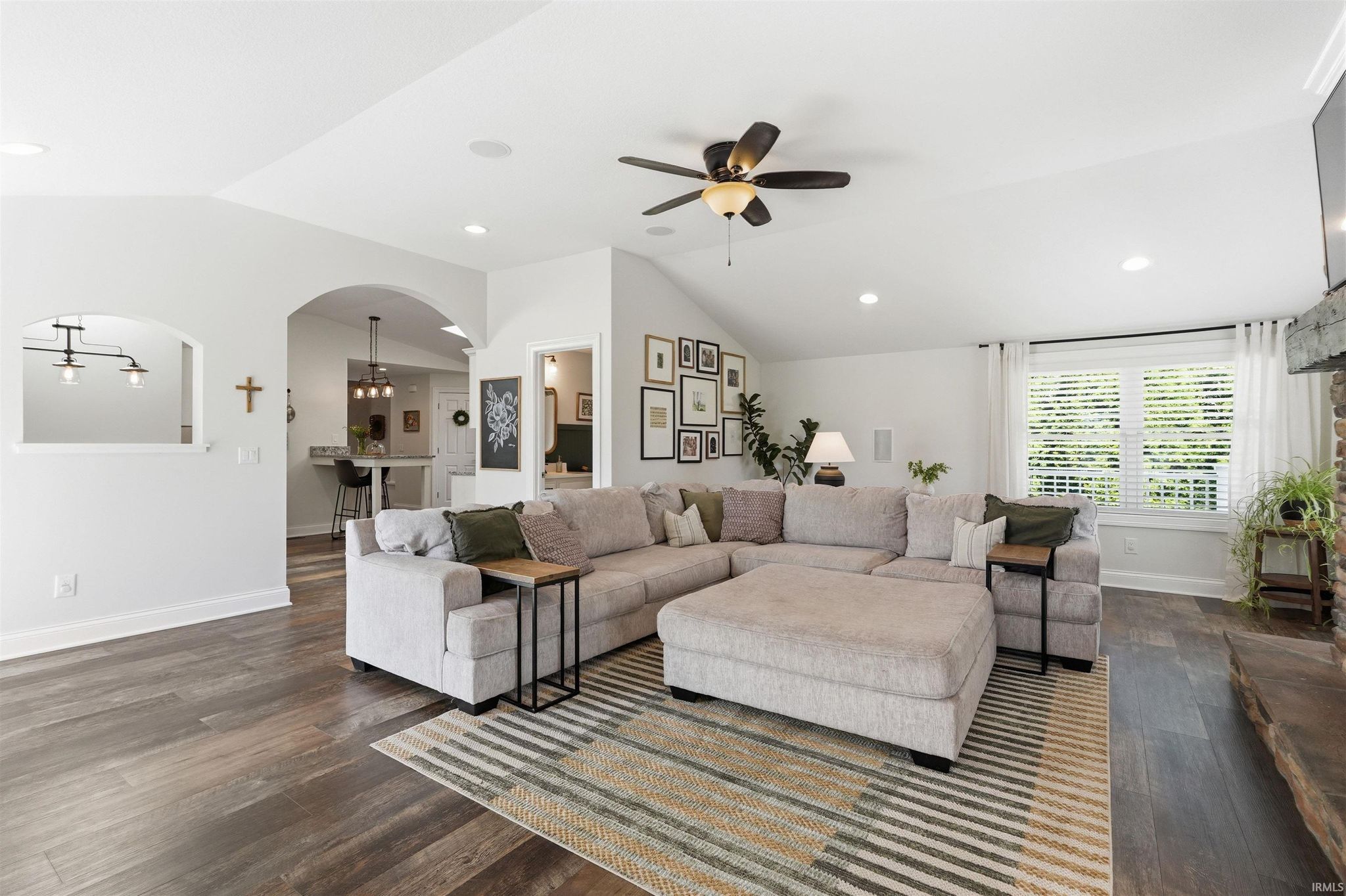 Welcome to this beautifully maintained and thoughtfully updated 4 bedroom, 3 full bath home in the heart of Churubusco, offering the perfect blend of space, comfort, and functionality both inside and out. Situated on nearly an acre, this property provides room to spread out, relax, and enjoy peaceful surroundings while still being conveniently located close to major thoroughfares for an easy commute. Inside, you’ll find fresh paint throughout and a warm, inviting layout designed for everyday living and entertaining. The spacious great room is filled with an abundance of natural light and anchored by a stunning floor-to-ceiling stone fireplace, creating a cozy yet impressive focal point. The home continues to shine with bright, light-filled spaces throughout, enhancing the open and welcoming feel. One of the standout features is the oversized all-seasons porch, complete with its own floor-to-ceiling stone fireplace, offering additional year-round living space and the perfect spot to unwind or host guests. The kitchen is complemented by a large pantry, providing excellent storage and functionality for daily living. The home offers four generously sized bedrooms and three full bathrooms, including a beautifully appointed primary suite featuring a walk-in tile shower for a spa-like experience. A partially finished basement adds even more usable space for recreation, hobbies, or storage. Multiple beautiful porch entries add charm and character while creating a seamless connection between indoor and outdoor living. Major mechanical updates have already been taken care of, including a newer furnace and central air system as well as a new well pump, offering added peace of mind. Step outside to enjoy the elegant wrap-around deck complete with a built-in gas fire pit, ideal for entertaining or relaxing evenings at home. The property also includes two outbuildings, with one equipped with electricity and water, providing excellent options for storage, workshop space, or additional hobbies. With its combination of updates, stunning features, natural light, space, and unique amenities, this property offers a rare opportunity to enjoy country-style living with modern comforts.