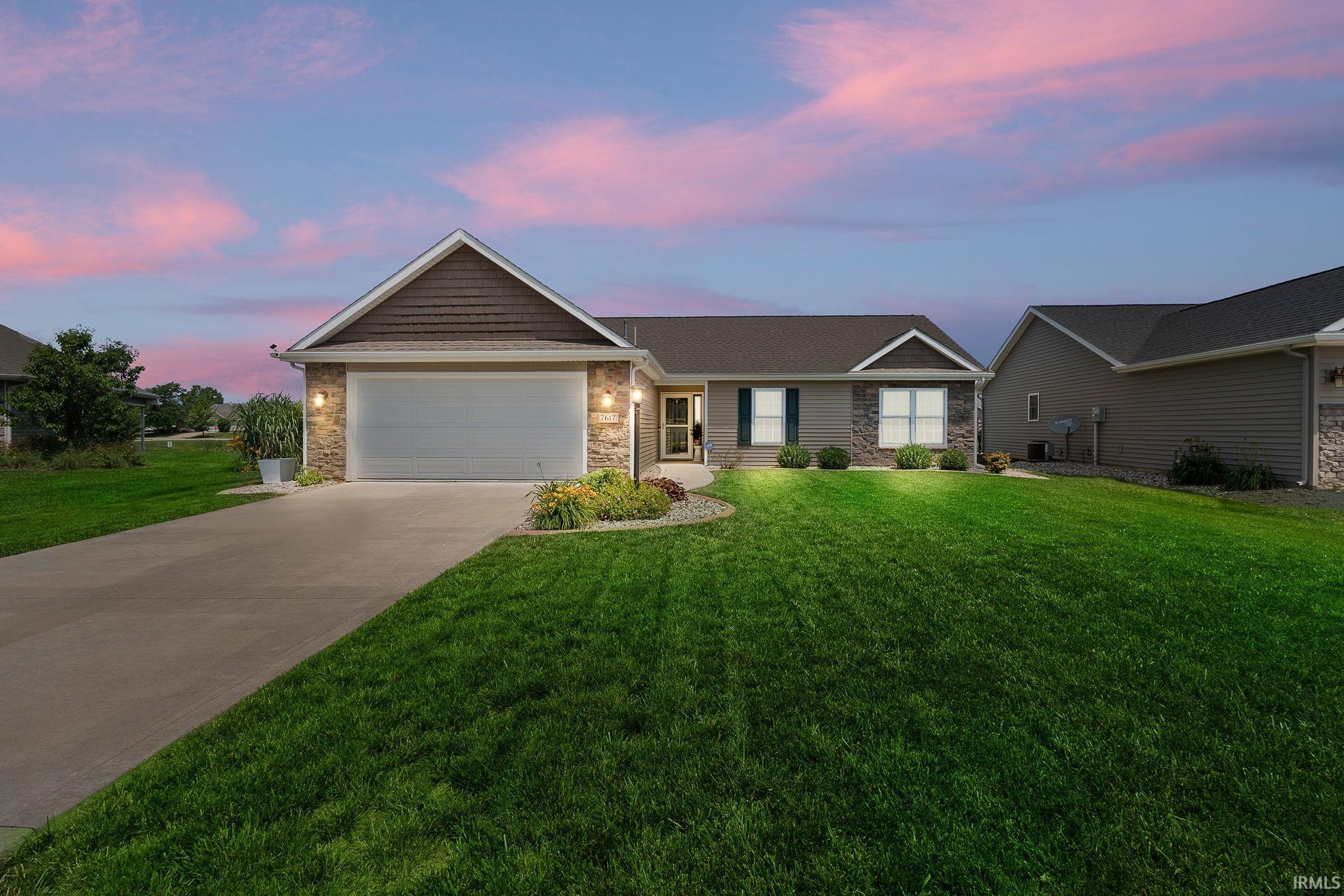 This move-in ready 3-bedroom, 2-bath ranch offers a perfect blend of comfort, style, and low-maintenance living with peaceful pond views and the option for villa services. Inside, enjoy a bright open layout with vaulted ceilings, a gas fireplace, and a kitchen that flows effortlessly to the covered patio—ideal for morning coffee or evening sunsets. Features include a walk-in pantry, Anderson windows, energy-efficient HVAC, and a heated 2-car garage with floored attic storage. Built in 2018, this home provides easy living just minutes from shopping, dining, and I-469, making it an exceptional choice for those seeking convenience and lifestyle.