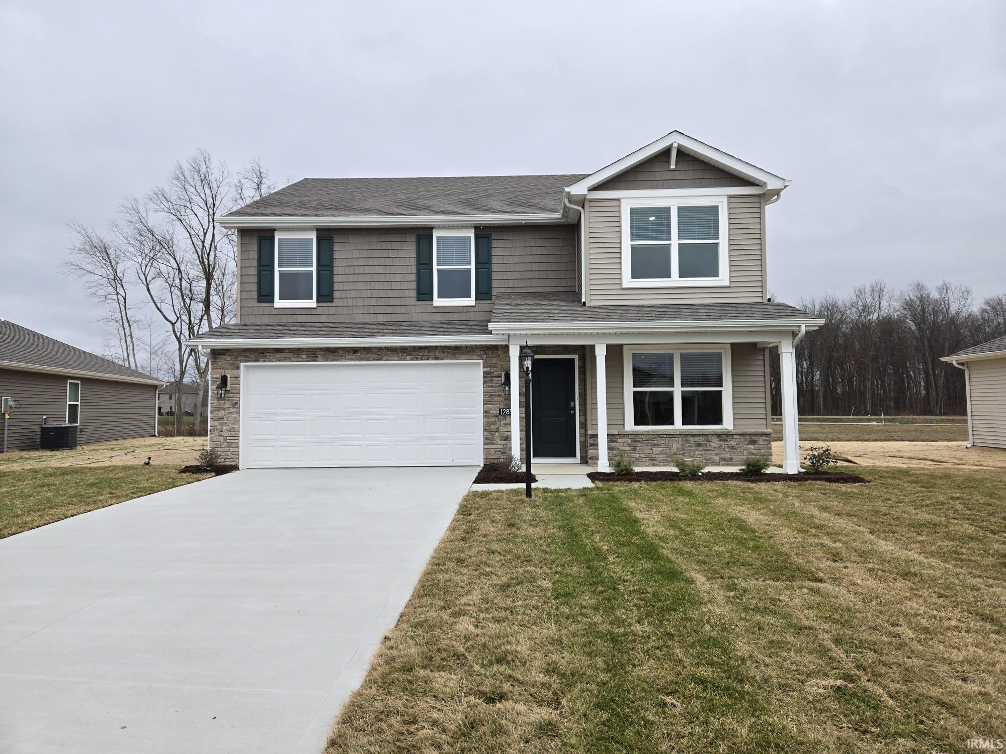 Come home to 12834 Watts Drive, located in the desirable Northwest Allen County. This home includes a large front porch and sits on a private cul-de-sac with a thick tree line. As you enter, you’ll find a private study just off the foyer—perfect for working from home or managing daily tasks. A hallway leads you into the heart of the home: a spacious great room, open casual dining area, and modern kitchen that all flow together effortlessly. A half bath and extra coat closets are located nearby for added convenience. The kitchen includes a central island, ample cabinet space, and a roomy walk-in pantry. Sleek finishes like lyra quartz countertops, sarsaparilla cabinets, calacatta empire backsplash, and stainless steel appliances make this space as beautiful as it is practical. Whether you’re cooking dinner or entertaining friends, this kitchen was designed to handle it all. Upstairs, four bedrooms surround a centrally located laundry room and loft-style bonus space. The primary bedroom is tucked away at the back of the home and includes a private bath with dual sinks with lyra quartz countertops, a ceramic tile walk-in shower, and an oversized walk-in closet. Don’t wait—book your visit today and see why 12834 Watts Drive could be your perfect fit. Photos representative of plan only and may vary as built.